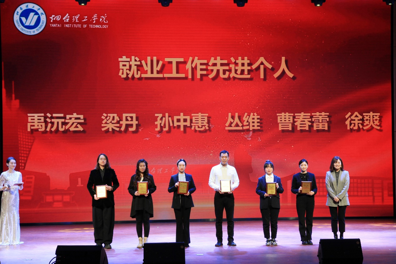 祥隆企業(yè)集團董事長、煙臺理工學院董事長辛軍及其他校領(lǐng)導為“目標管理先進單位”教學單位、“黨建及學生工作先進單位”等先進單位頒獎。